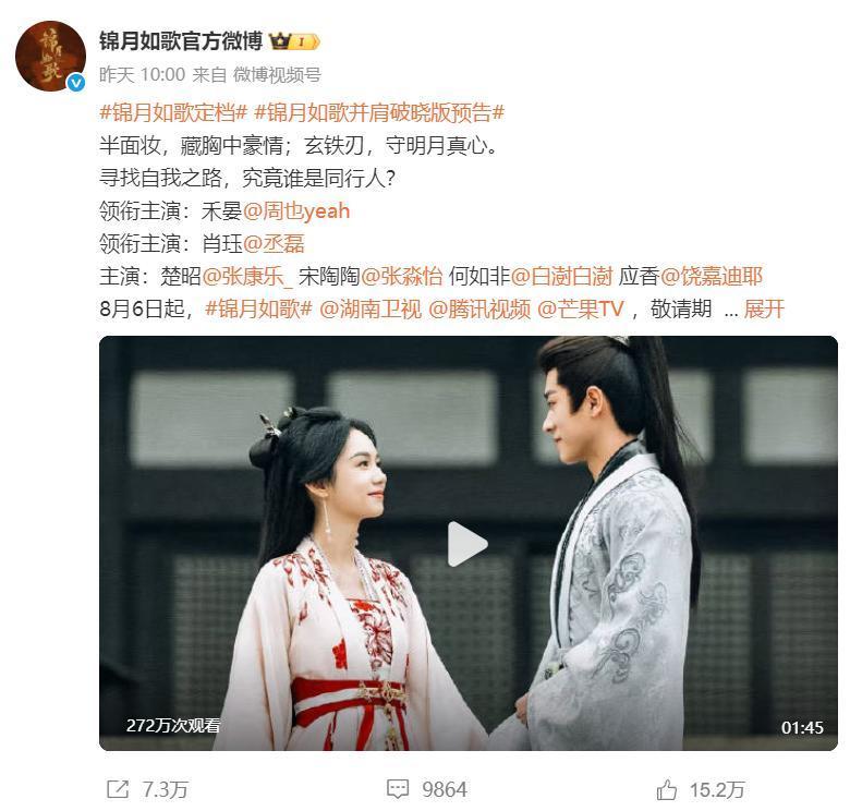 从这部剧的人物设定上看,我们可以知道,这部剧是“双强”人设,现在的观众非常喜欢这样的人物设定,而这部剧获得关注,主要是因为两位主演,在《锦月如歌》中,周也将搭档丞磊。